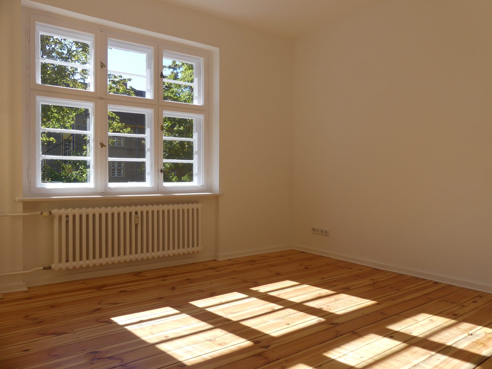 Modernisierte 3-Zimmer Eigentumswohnung im 1. Obergeschoss eines denkmalgeschützten Altbaus in Berlin-Reinickendorf mit Südbalkon und Keller.